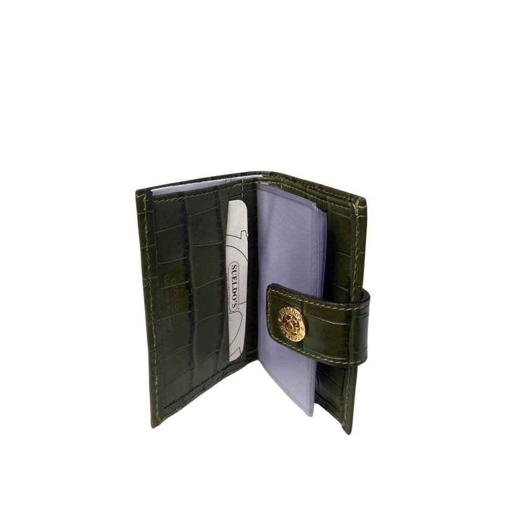 Carteira em couro legítimo, de tamanho pequeno e fechamento por botão de pressão. Modelo básico mas atende todas as necessidades que uma carteira completa proporciona. Internamente oferece 2 bolsos para cartões de crédito, 2 bolsos simples, 8 folhas plásticas para cartões e bolso porta cédulas. Atrás, um bolso porta moedas com zíper. Dimensões aproximadas (CxAxL): 7,5 x 10,5 x 2