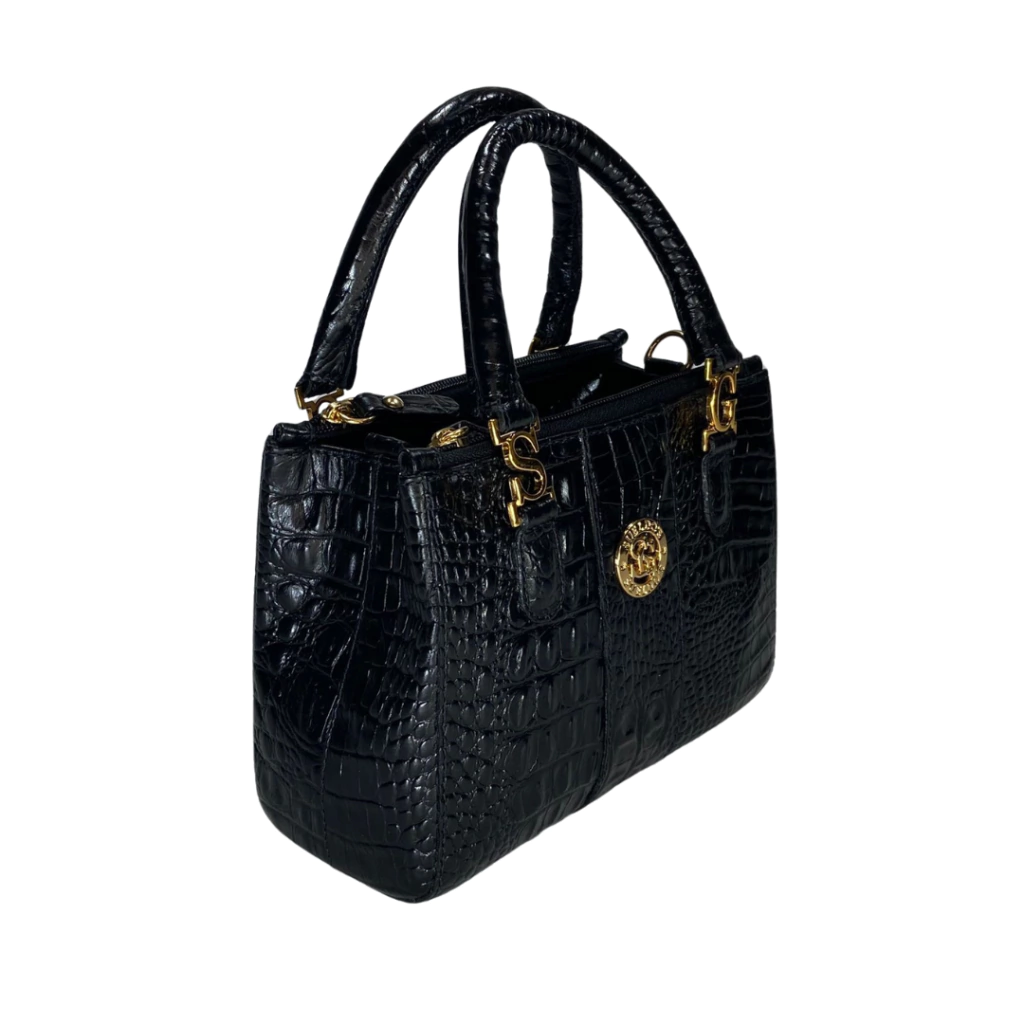BOLSA PEQUENA EM COURO IVY - PRETO CROCO