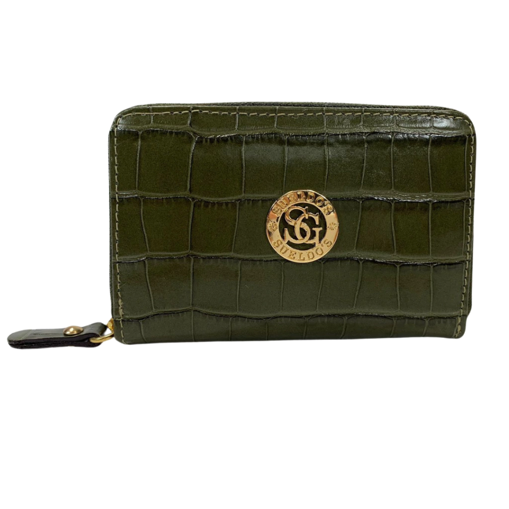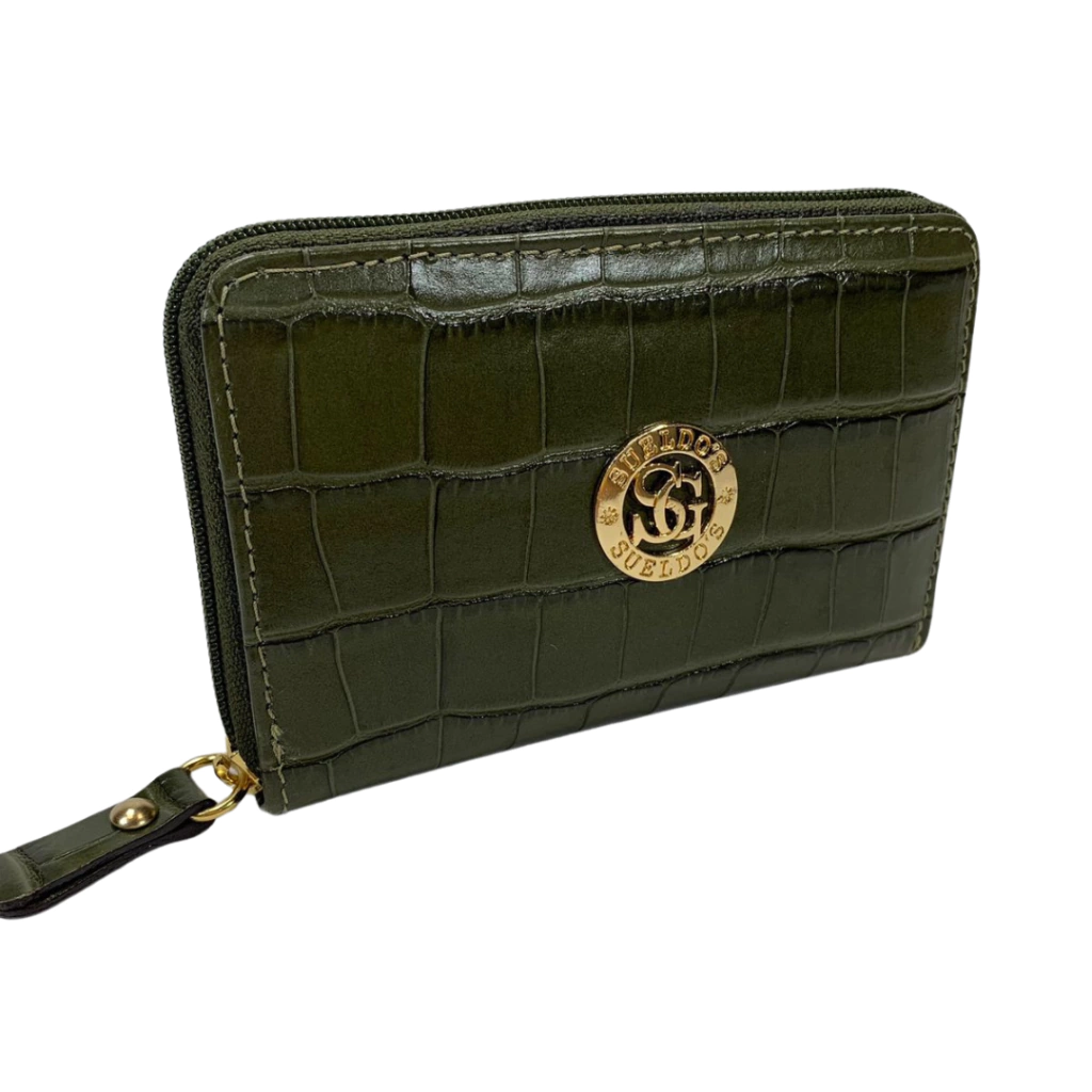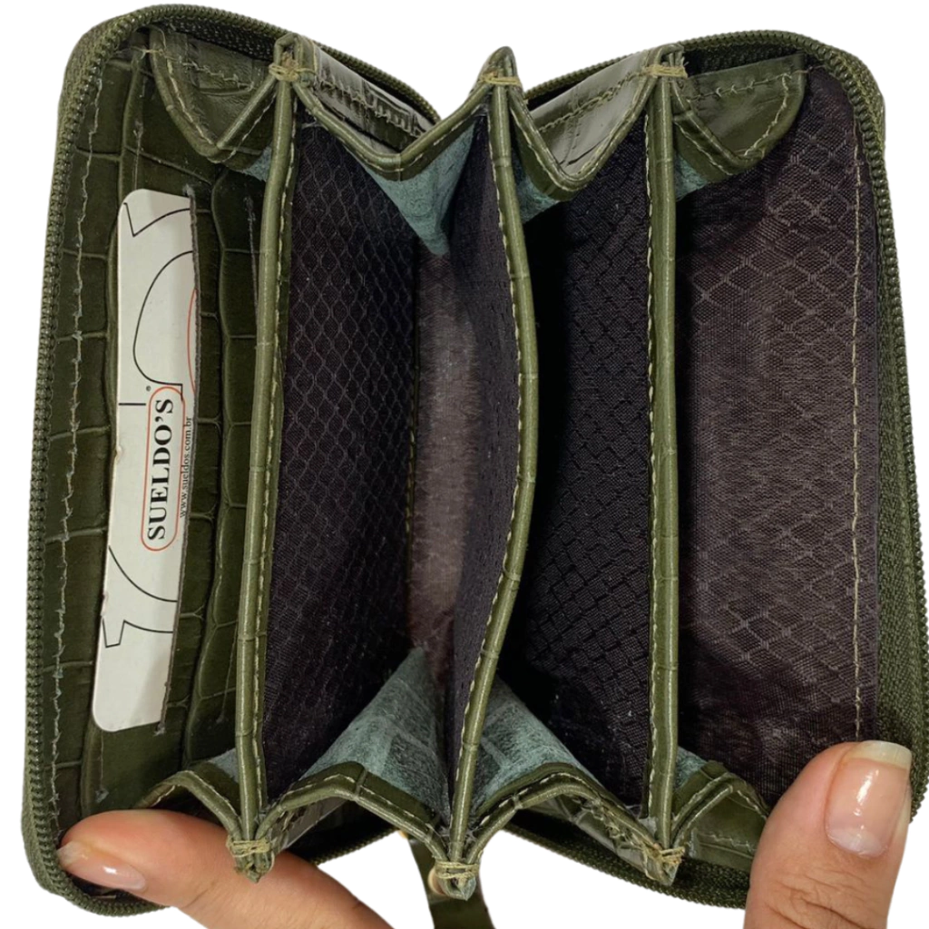 Carteira Sueldos em couro legítimo, de tamanho pequeno e fechamento por zíper. Internamente oferece 3 bolsos para cartões de crédito e divisórias para melhor organização. Possui atrás bolso porta moedas com zíper.