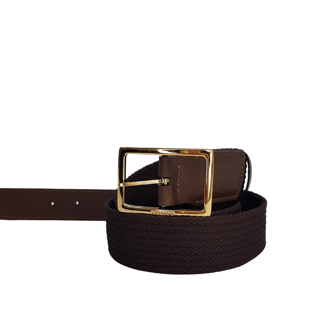 O modelo tem em sua extensão de comprimento o material em fita e nas extremidades temos o material em couro. Com fivela personalizada e em banho duplo especial expõe sua sofisticação. Possui 4 cm de Largua