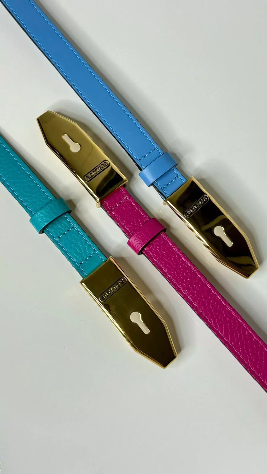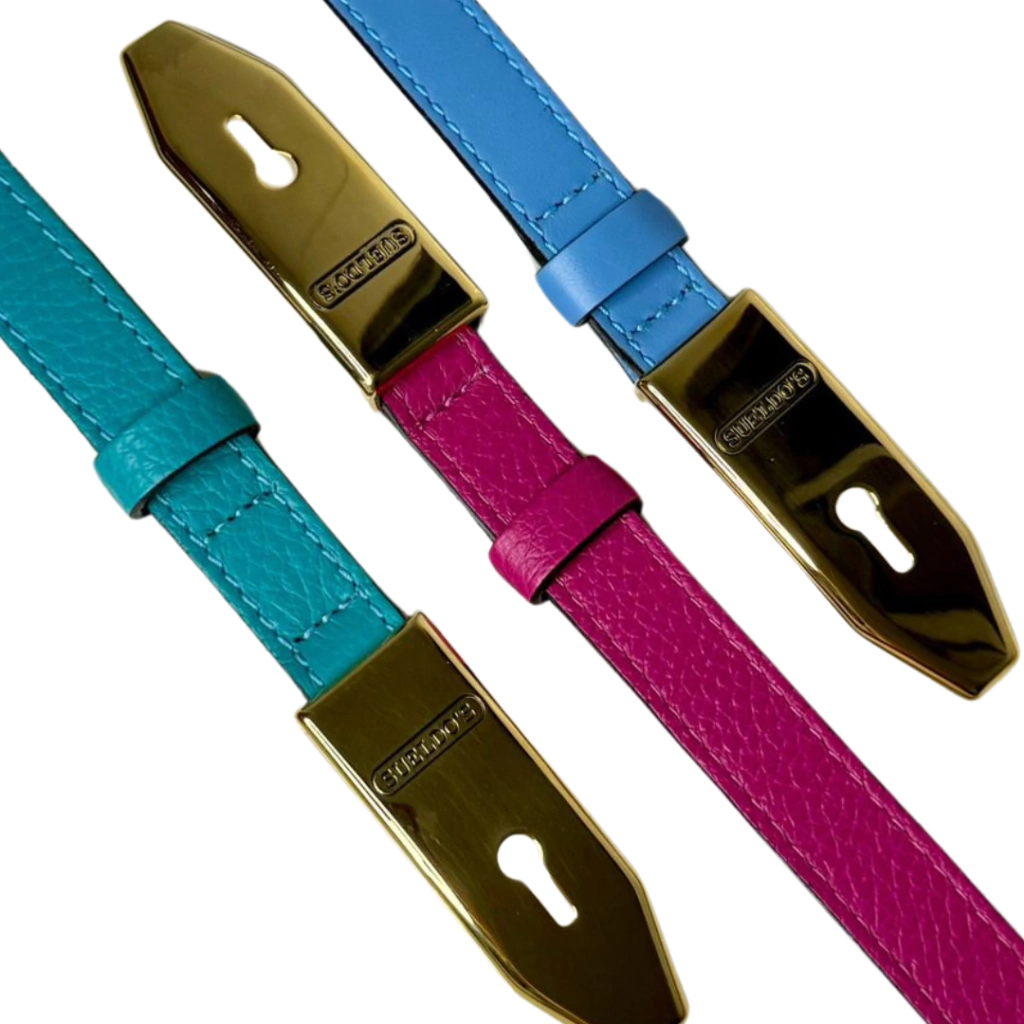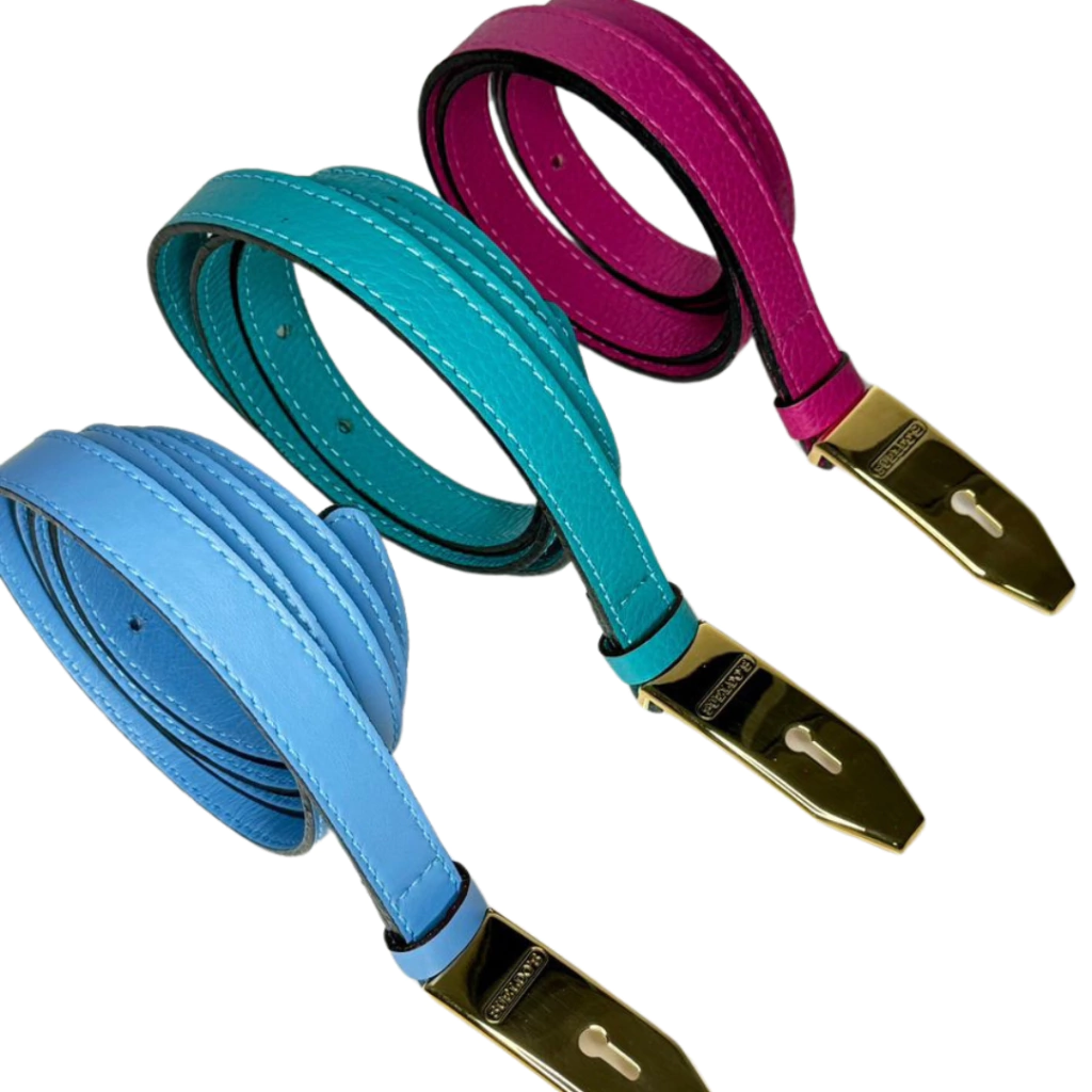 Cinto feminino em couro legítimo e ferragem em banho triplo especial modelo fino, fivela personalizada. Possui 2 cm de largura.