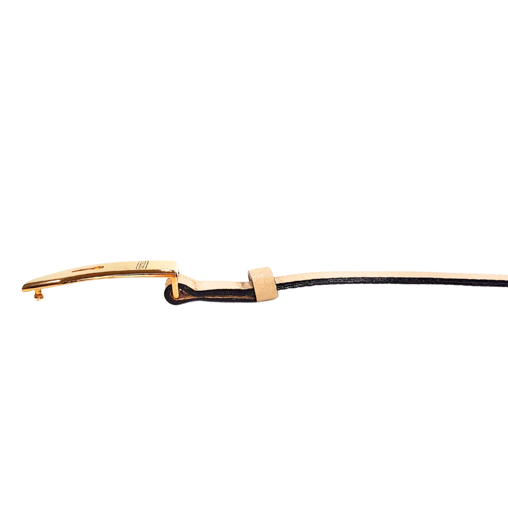 Cinto feminino em couro legítimo e ferragem douradas em banho triplo especial, fivela personalizada fechadura. Possui 1 cm de largura.