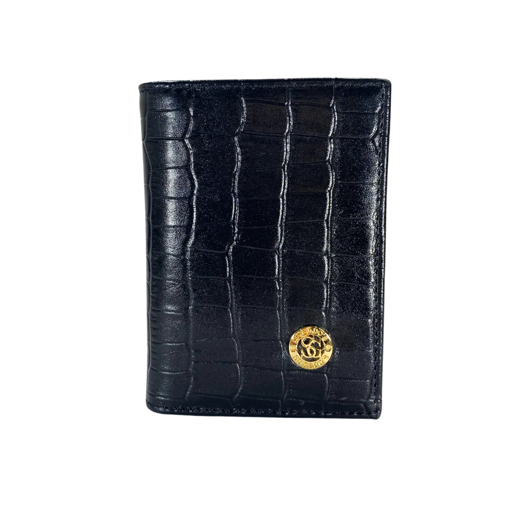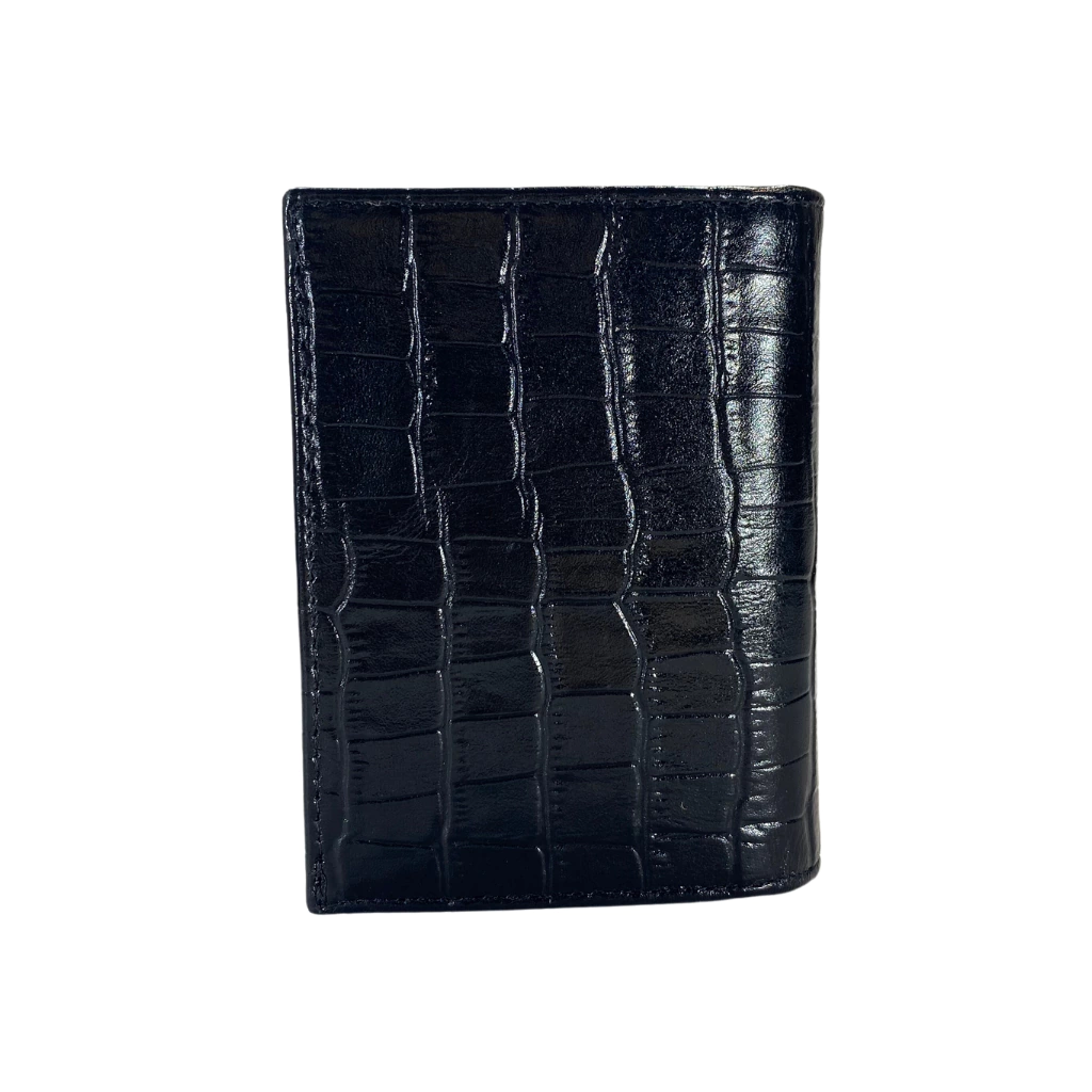 Internamente oferece um bolso simples para cédulas dobradas,são 3 espaços para cartão e um bolso plástico para RG e carteira de habilitação.
