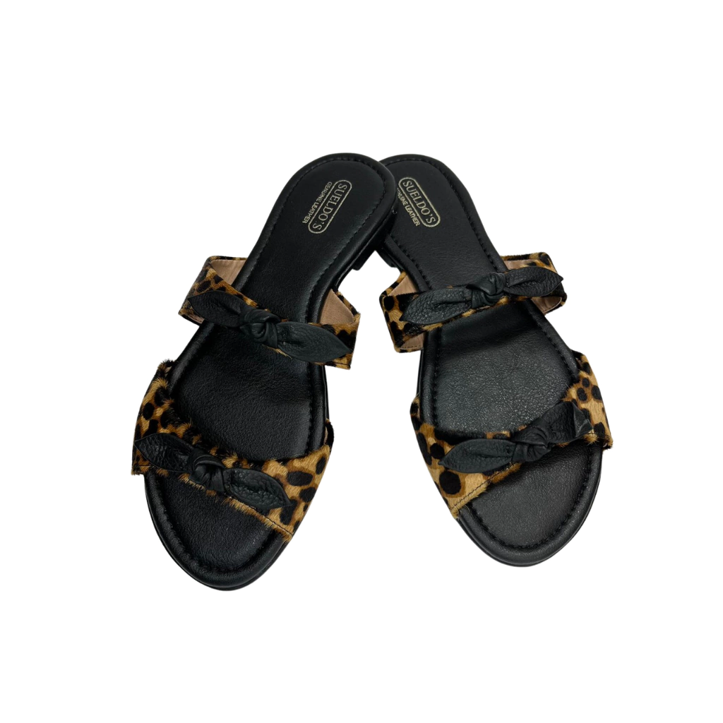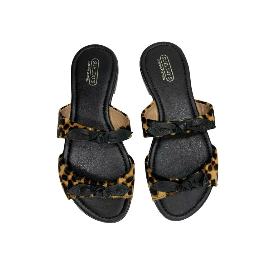 Rasteirinha em couro legítimo perfeita para momentos casuais. Conforto e estilo garantido. O modelo possui duas correias com detalhes de laço em couro hilux na parte central e o delicado toque de pêlo de onça.