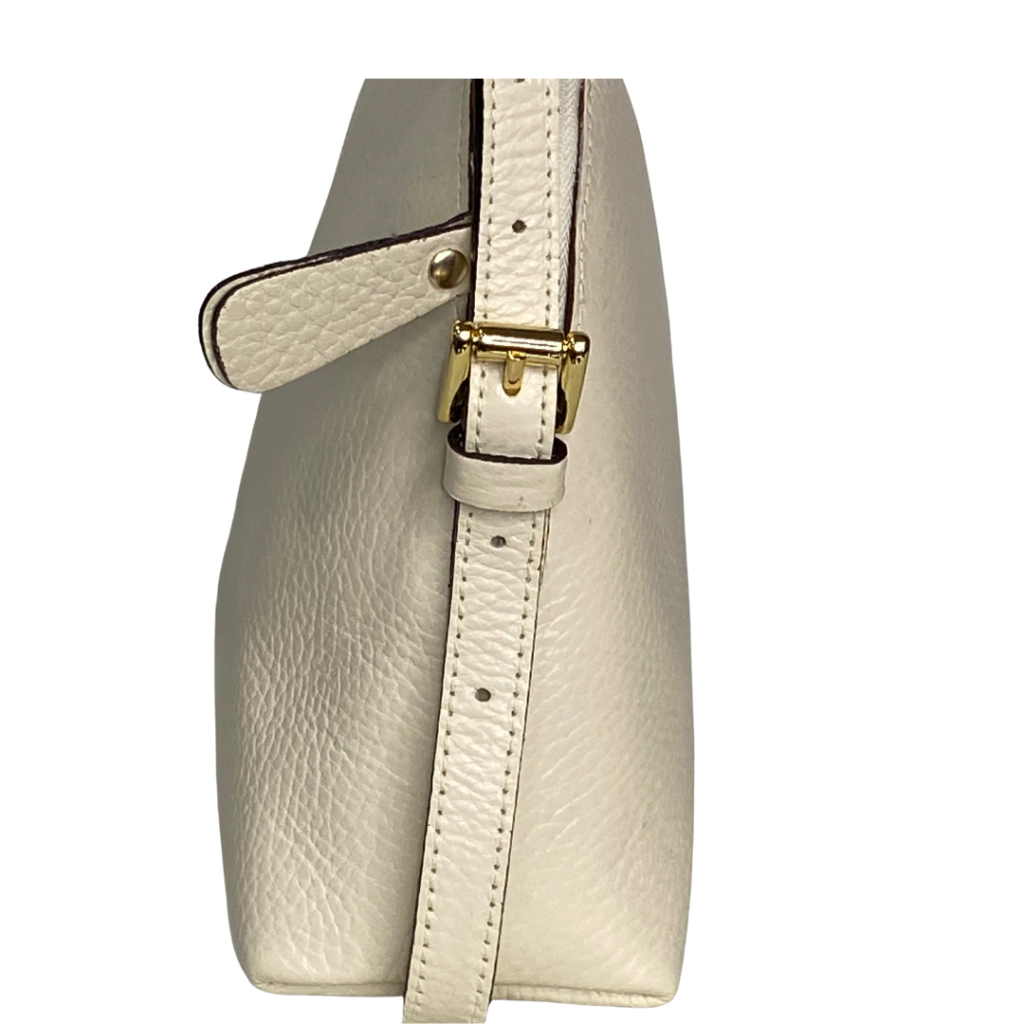 Bolsa Sueldo's em couro legítimo, de tamanho pequeno e fechamento por zíper. O modelo permite uso da bolsa de forma transversal ou tiracolo, através da alça regulável por fivela é possível diminuir ou aumetar o tamanho dela, a abertura da bolsa é ampla permitindo excelente visão interna e formato redondo. Dentro temos 2 bolsos, sendo um simples e outro com zíper. Dimensões aproximadas (CxAxL): 22 x 18 x 7 cm